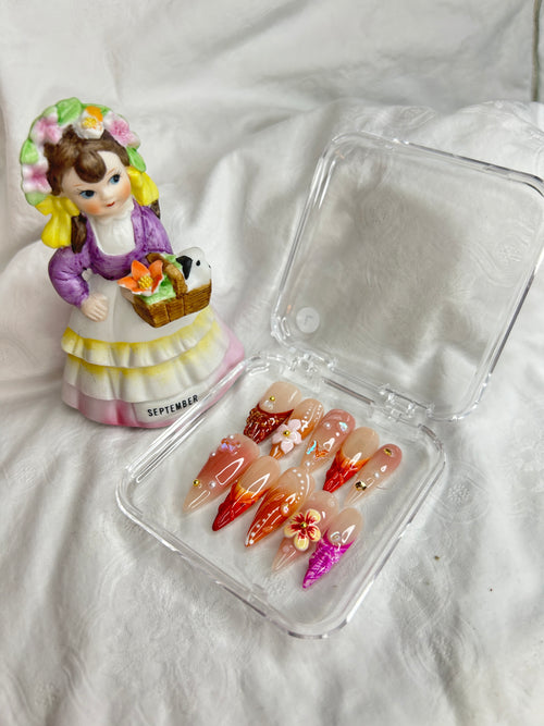 Golden Citrus Bloom – Handmade Orange Floral Press-On Nails -