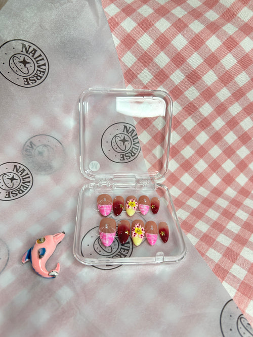 Handmade Fruit Press-On Nails | Watermelon & Citrus Design | Summer Pastel 3D Floral Nails -